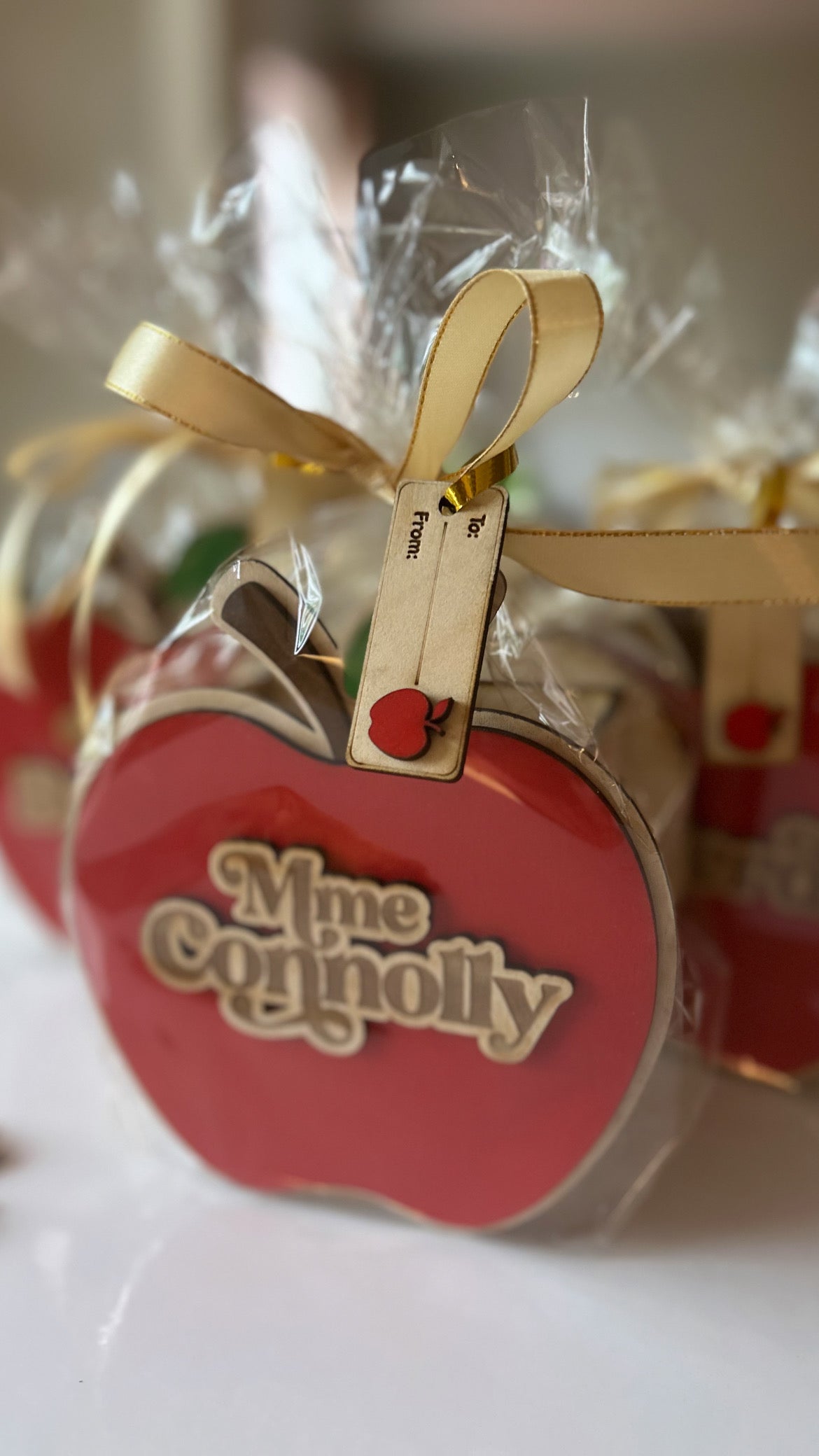 This personalized apple-themed pencil organizer crate is the perfect gift for teachers. Made to order with the teacher's name, this unique and practical gift will keep their desk organized while reminding them of their students' appreciation. Show your gratitude with this thoughtful and customizable gift.