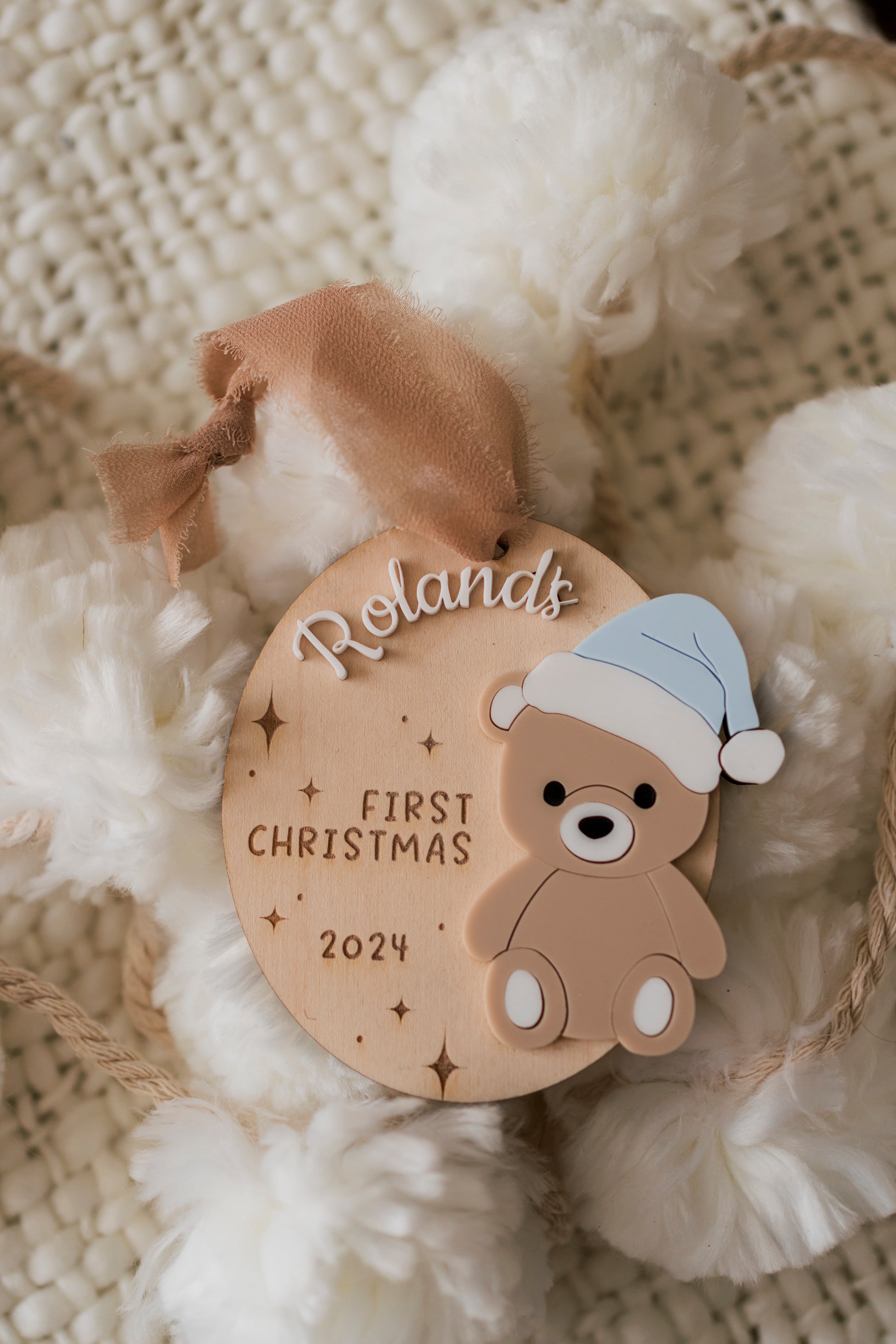 Celebrate your baby's first Christmas with this adorable Santa bear ornament. Perfect for commemorating the special occasion or adding a touch of cuteness to your tree. Makes a great gift for new parents. (Ho, ho, ho-liday!)