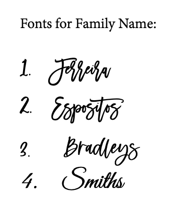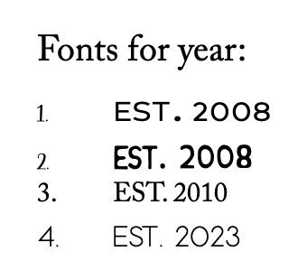 Choose the font from the picture included and font for the year if adding and include in notes at check out