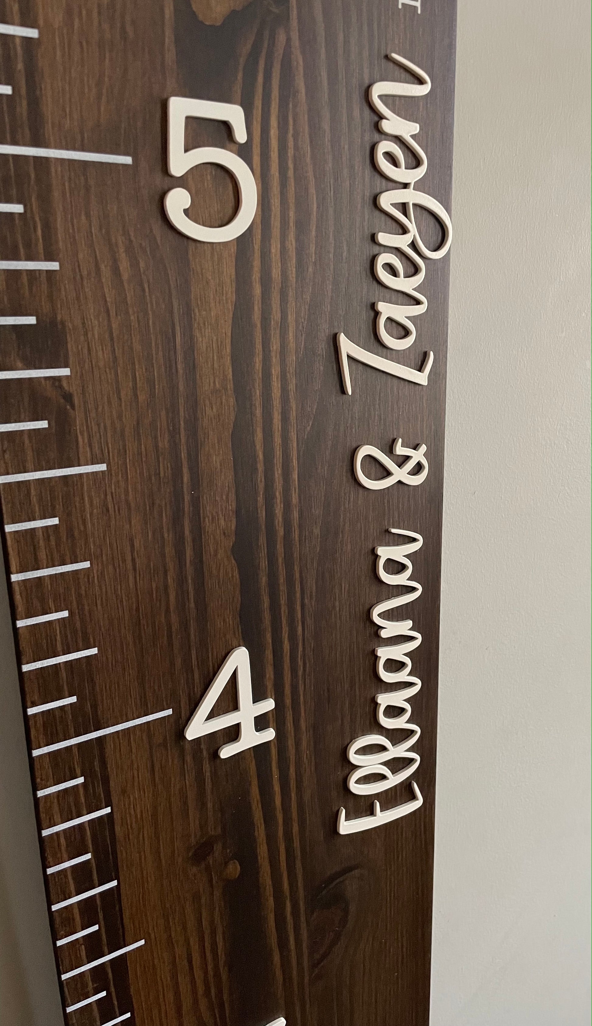 Create the perfect addition to your child's bedroom wall with this classic 3D growth ruler with a range of customizable options. Quality wood and beautiful workmanship with 3D lettering makes this a keepsake item for years to come. Comes ready to hang with keyhole slot on back. Makes a perfect non-cluttering gift for birthdays, baby showers, Christmas, etc