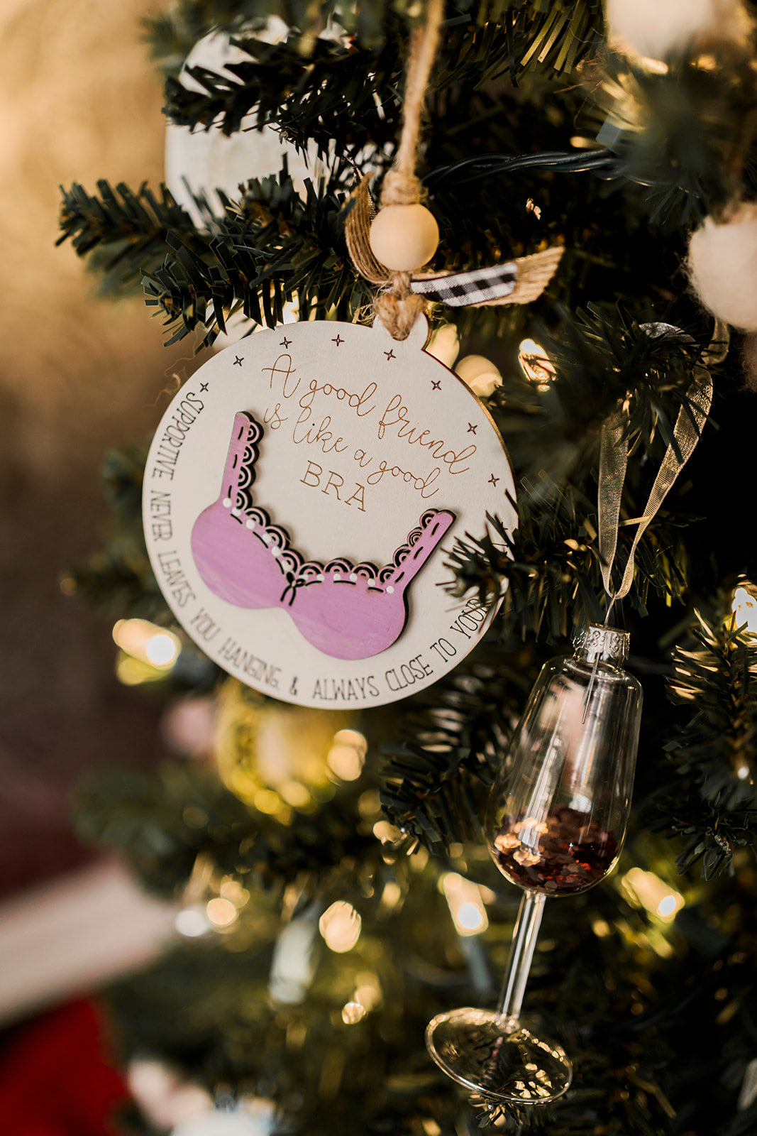 This Good Friends are like a Bra Ornament serves as the perfect gift for your bosom buddies. Quirky and cute, it's a holiday must-have for showing appreciation to those who support you. Spread some humor and love this Christmas with this unique decoration.