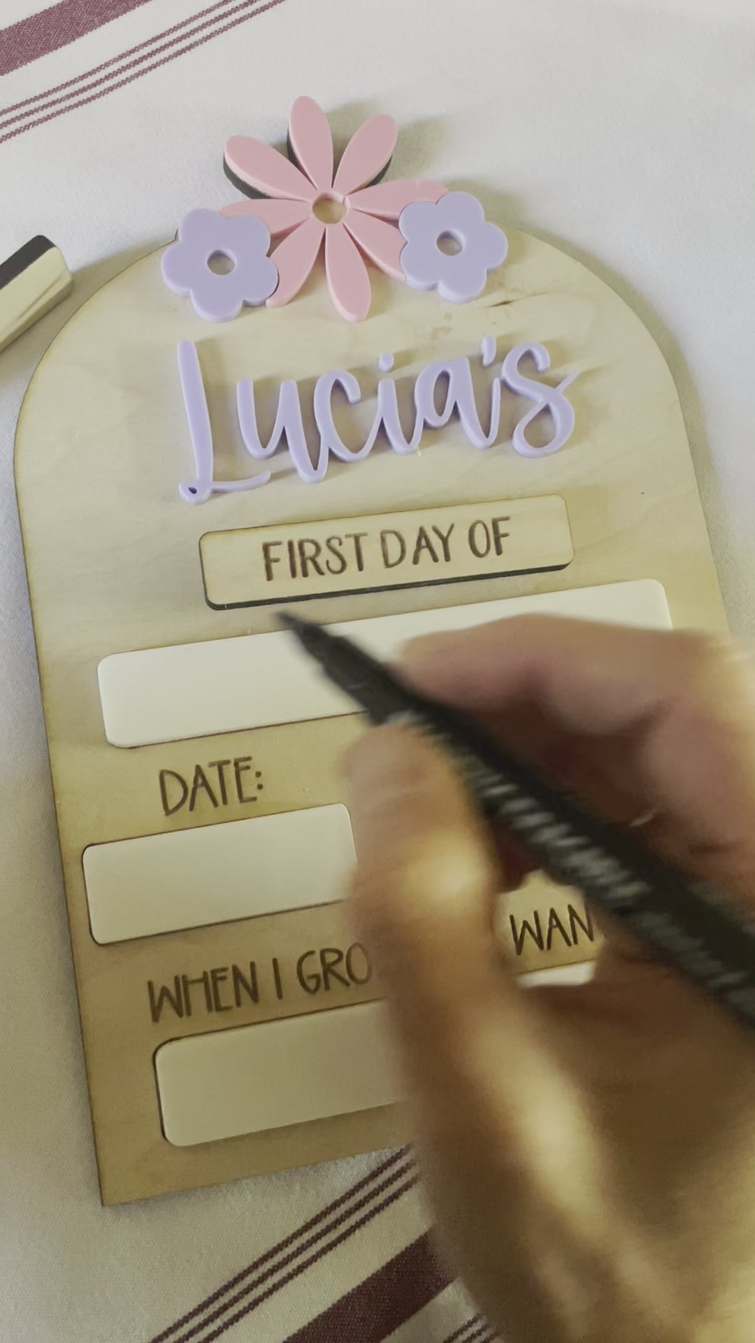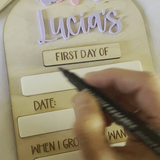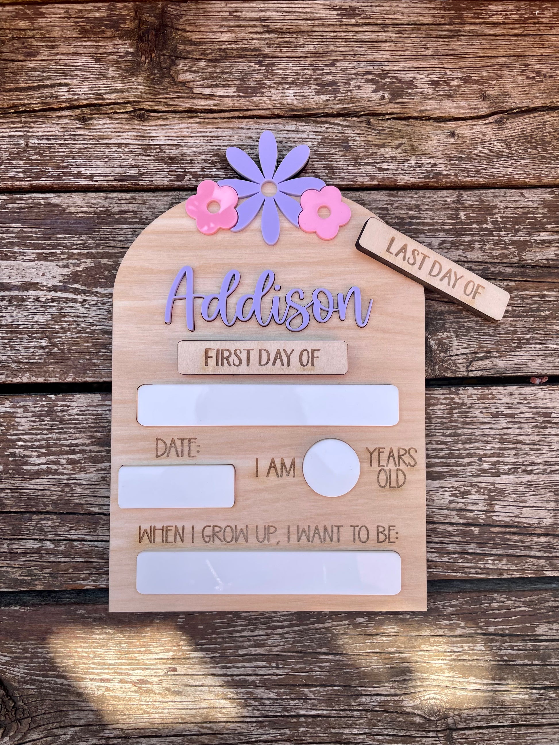 These adorable Personalized first/last day of school are great for picture props and add to the excitement of going back to school. Comes with erasable panel for reuse.