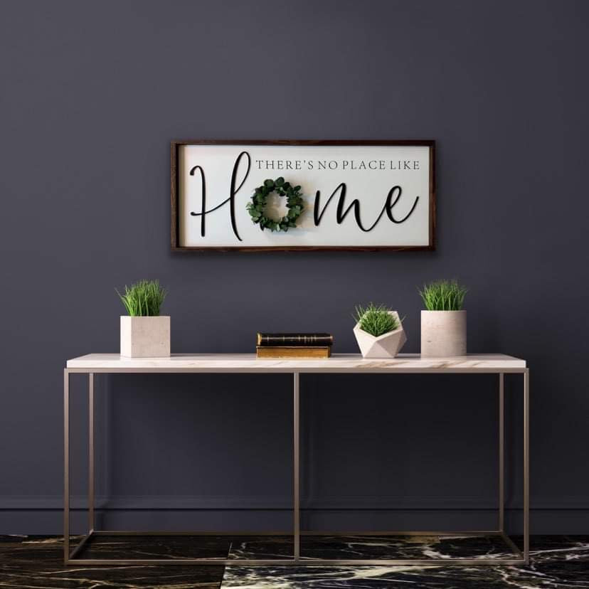 This eye-catching framed sign with it's handmade wreath and 3D lettering is a beautiful addition to your home and makes a lovely gift for any occasion. Framing is customizable. Note: Size featured is the 15x35 larger size