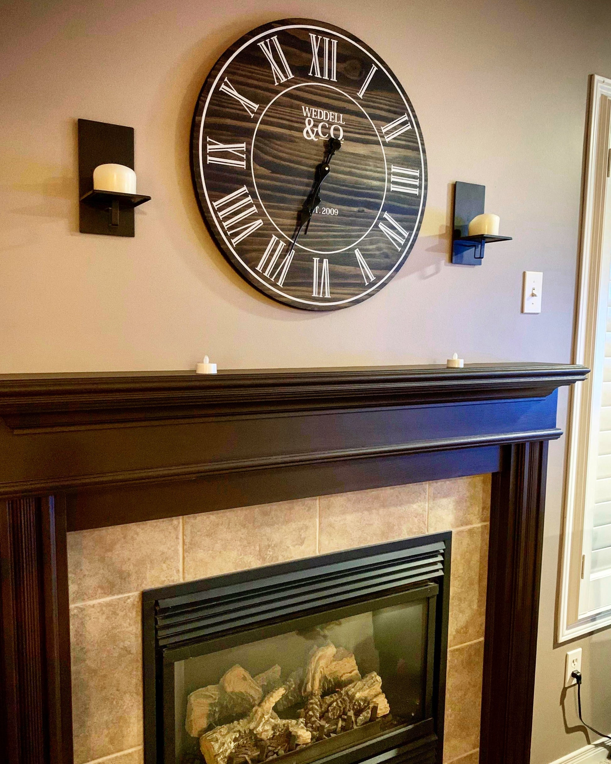 Custom Wood Clocks choose between single panel (see dark brown clock) or shiplap style.